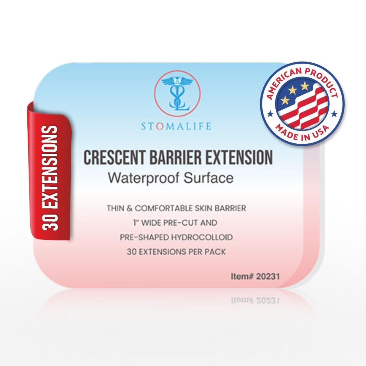 Stomalife Crescent Barrier Extensions - 30 Extensions for Ostomy-Colostomy-Ileostomy Innovative Tape Alternative: Stomalife presents a revolutionary solution to protect your skin from irritation and rashes. Our USA-made hydrocolloid barrier arcs offer superior stoma protection without the need for traditional tape, enhancing your comfort and confidence. Skin-Friendly & Durable: Stomalife's barrier arcs provide both the protection and adhesive power required to keep your pouch securely in place. They are gentle on the skin and can be comfortably worn for extended periods without causing irritation or discomfort.